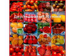 Широкий асортимент сортових томатів, вирощених власноруч, а також насіння овочів та квітів.